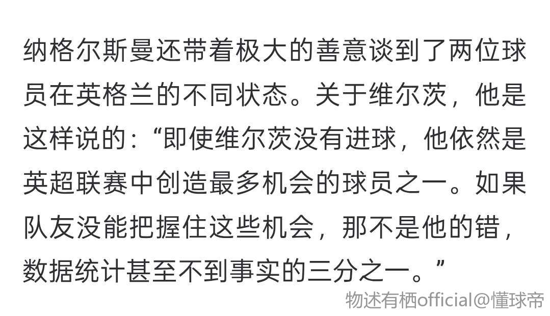数据不能说明维尔茨的水平,只有看了比赛才知道他对团队的贡献