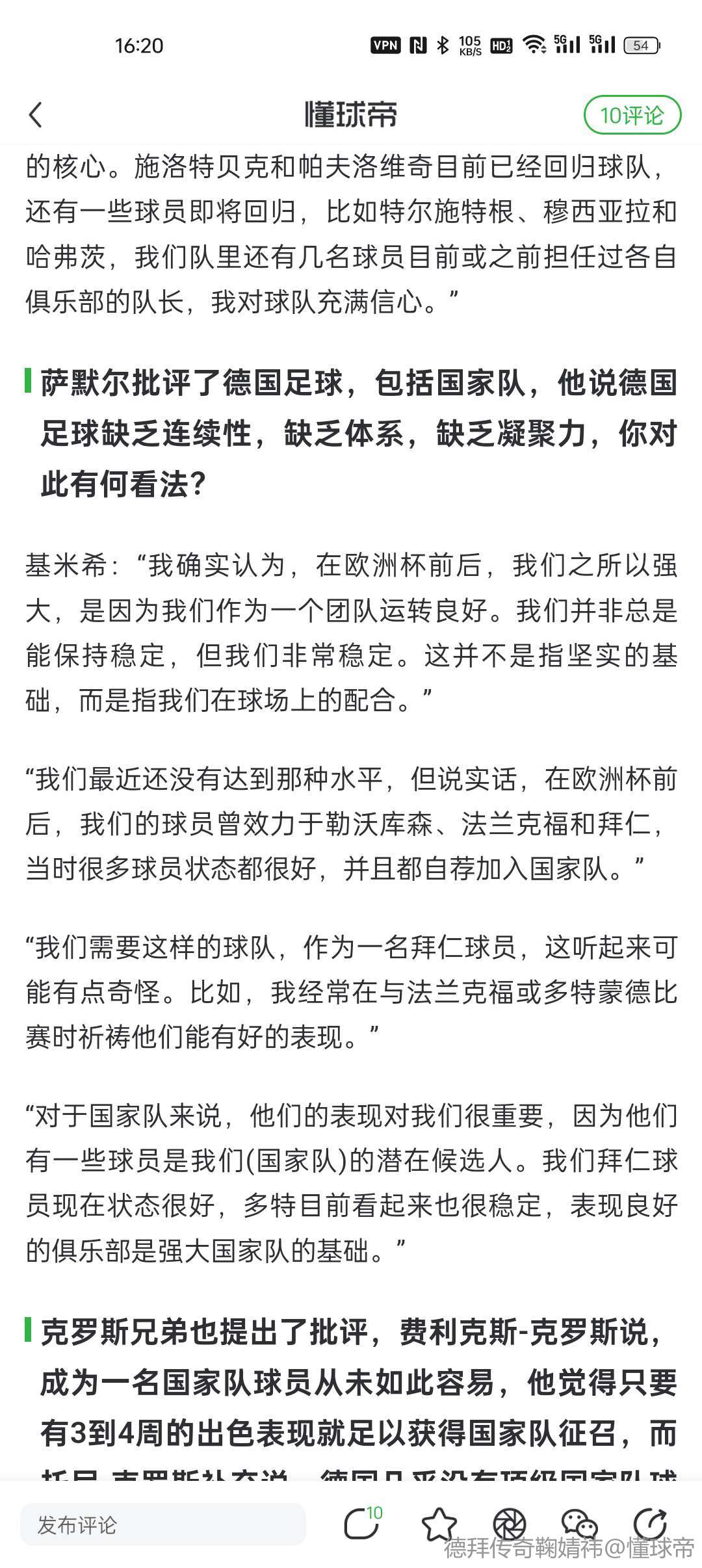基米希:“相信我,我们球员非常注重自我批评。我们知道自己什么时候表现好,什么时候表现差,作为一支球队,你无法总是影响比赛结果,但你可以影响取得成功的方式,我们必须在这方面努力,至于批评,我们必须应对。”