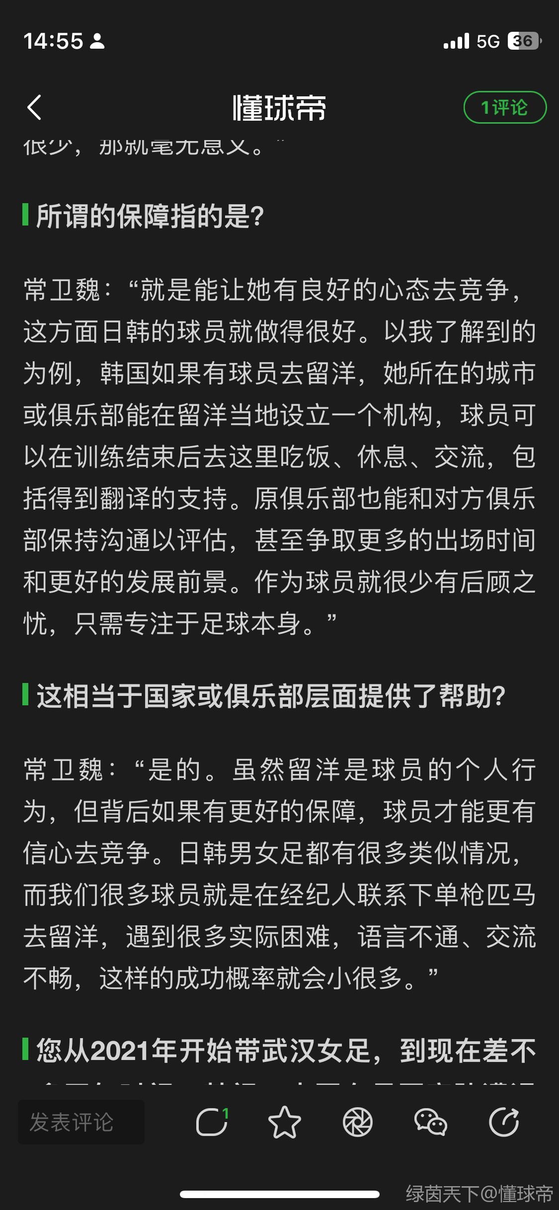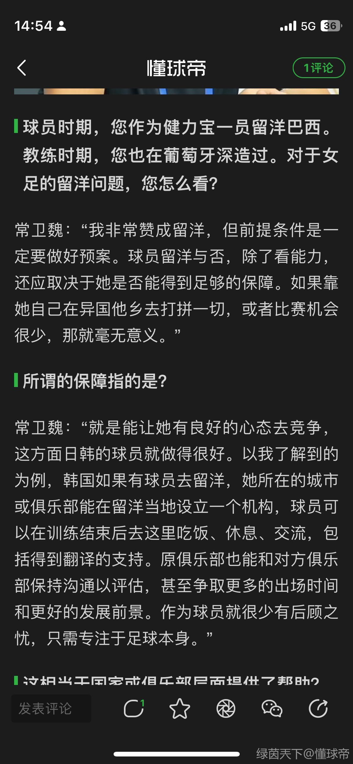 常卫魏:“是的。虽然留洋是球员的个人行为,但背后如果有更好的保障,球员才能更有信心去竞争。日韩男女足都有很多类似情况,而我们很多球员就是在经纪人联系下单枪匹马去留洋,遇到很多实际困难,语言不通、交流不畅,这样的成功概率就会小很多。”