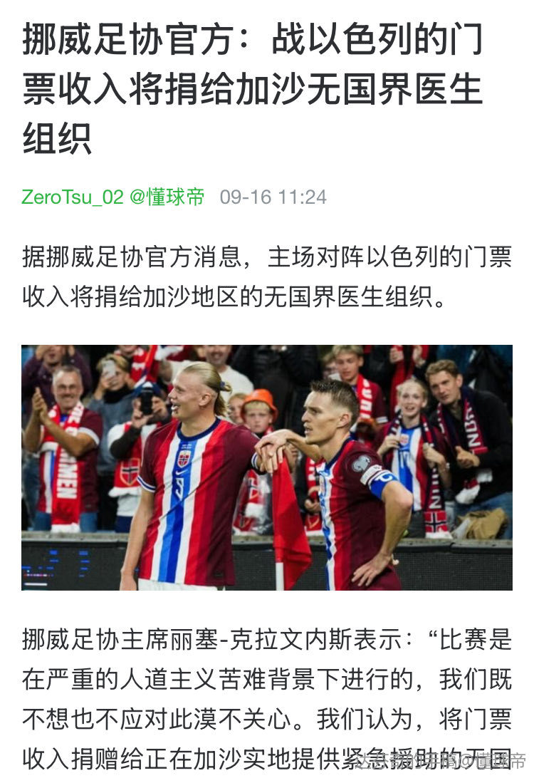 这场还特地看了下奏国歌的环节,因为挪威也是承认巴勒斯坦国比较早的国家,在以色列国歌即将奏起的一刻给了看台个镜头有人举着红牌,奏起后就一直没给看台镜头了 有一些零星的嘘声没有想象中强烈
