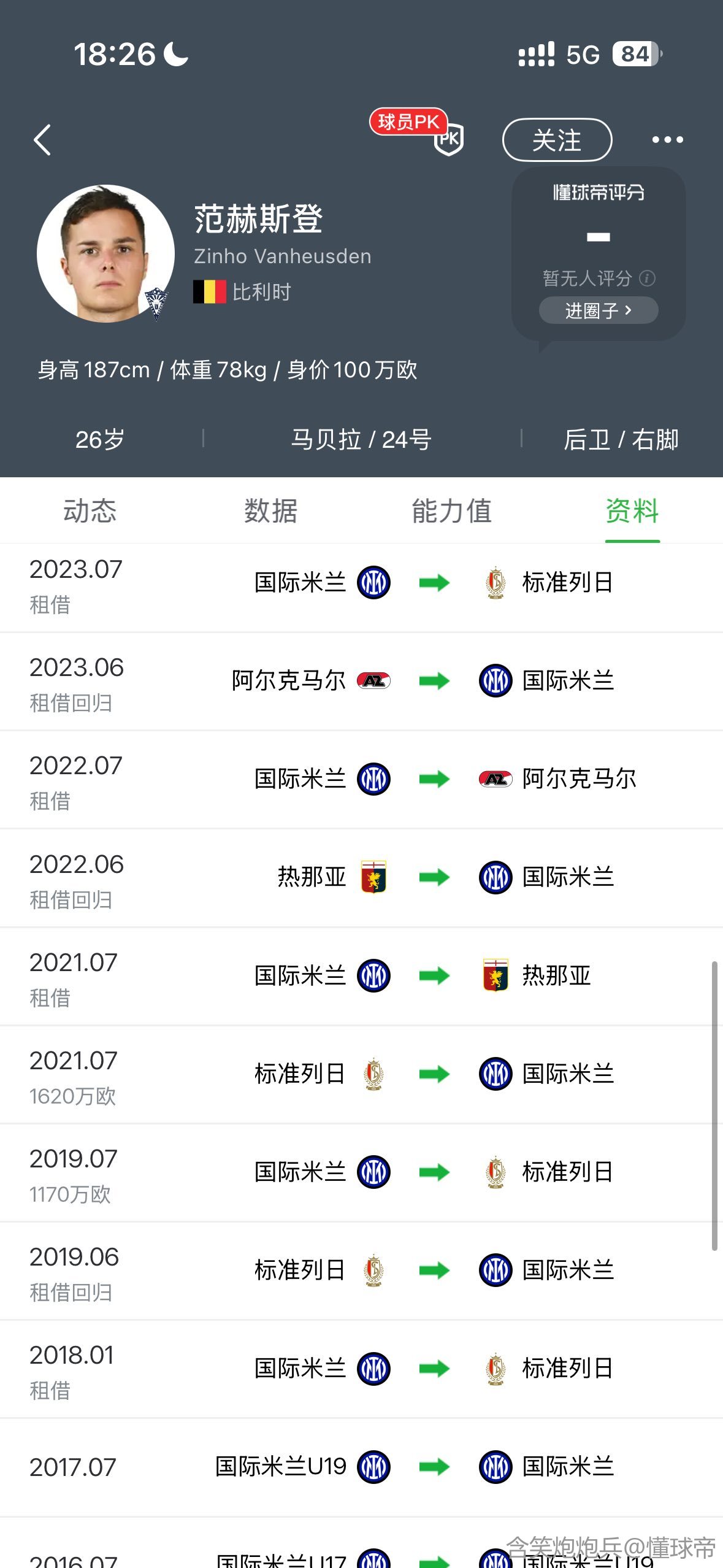 他很早很小就去了国米,他一开始在标准列日是队长,你们知道他在国米能拿多少年薪吗?差不多120万欧元年薪,但是他来这,他跟我是一样的工资。但是他是因为还有国米在给他支付工资,他跟国米的合同已经解除了,但我也不清楚是为什么,国米还是会给他发钱。