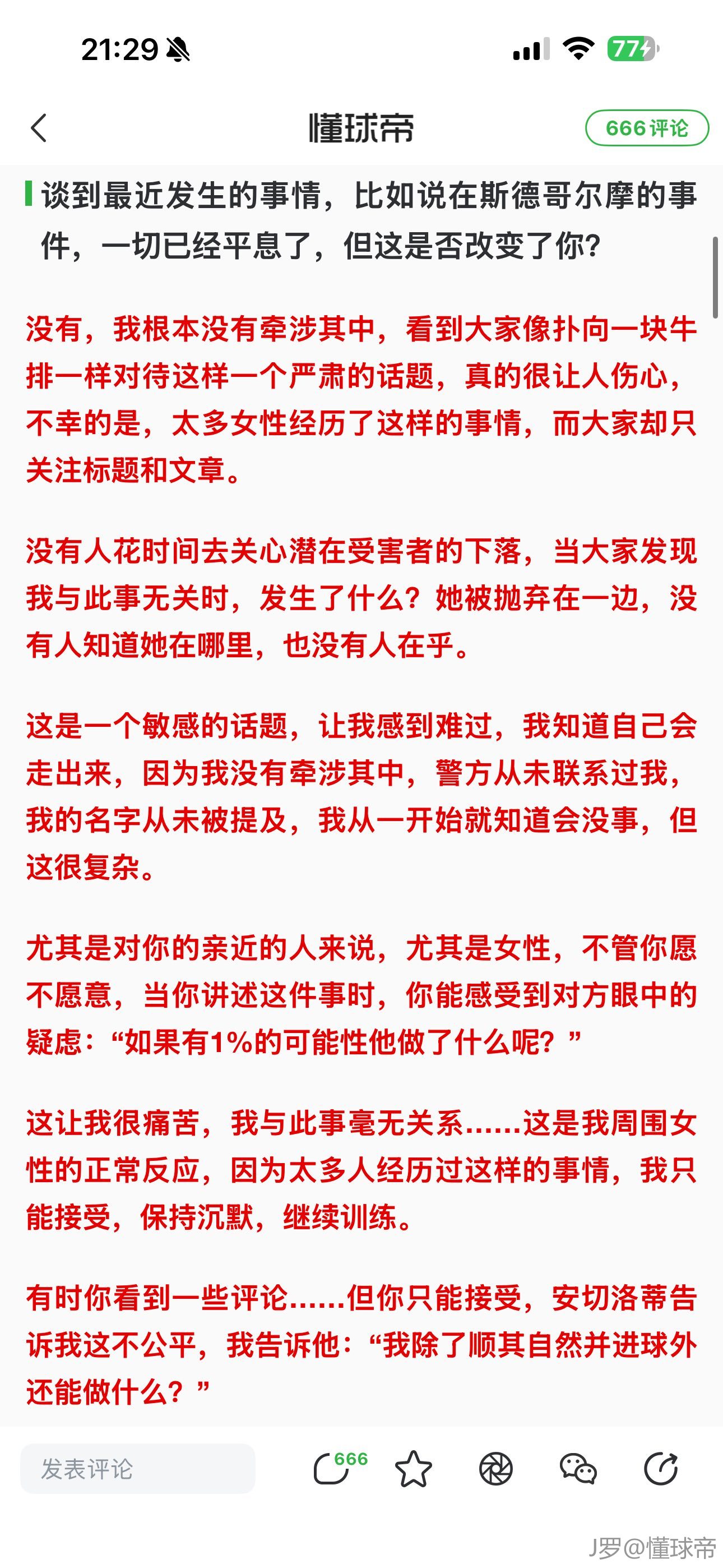 谈话很真诚且有深度和文采,黑子黑他的那些话都是其他球员单方面输出,他从不回应或者评价别人