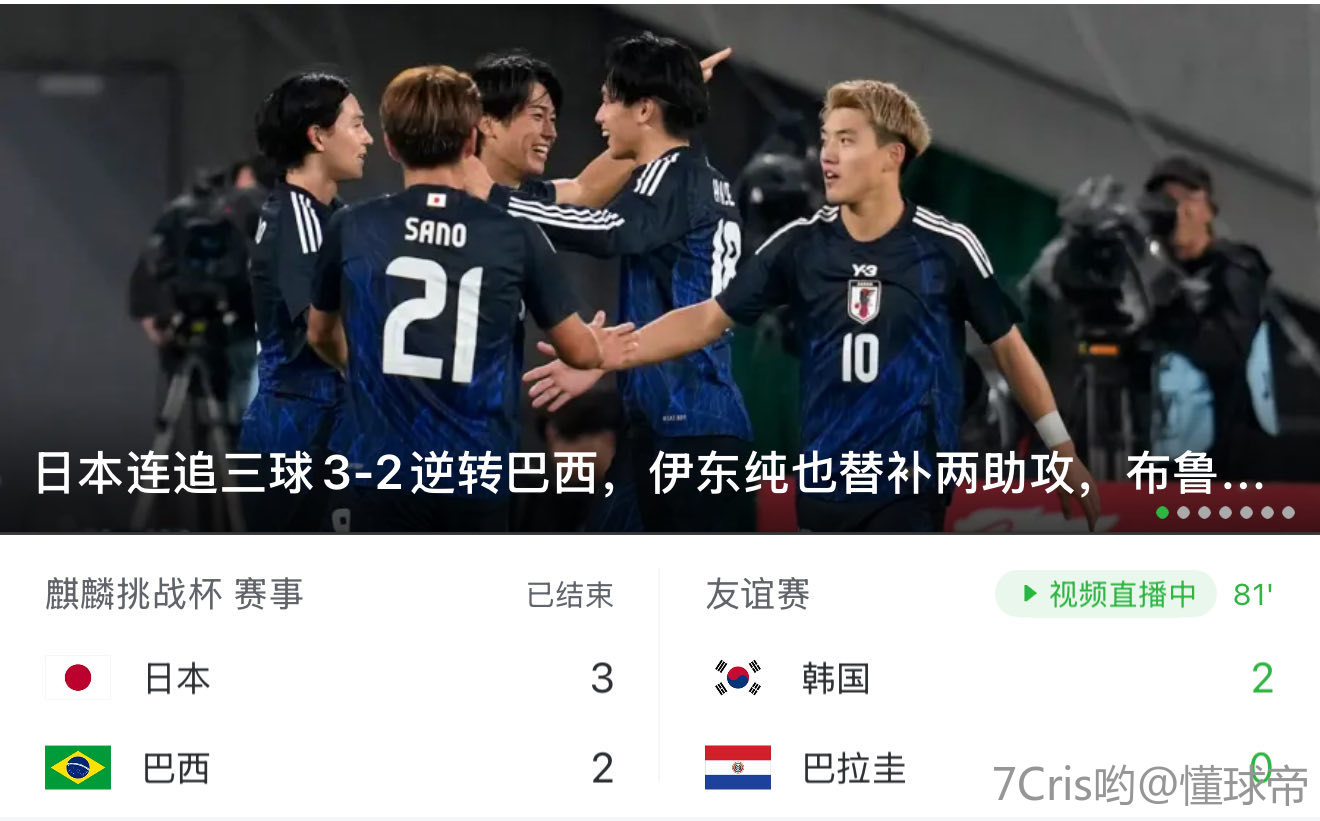 日本3:2逆转巴西 韩国2:0战胜巴拉圭 我们的足球差距真的不是一点半点 我们何时能赶上这点呢?