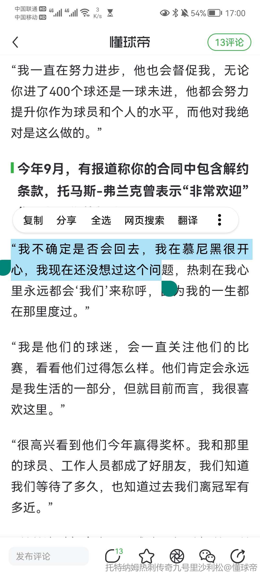 今年9月,有报道称你的合同中包含解约条款,托马斯-弗兰克曾表示“非常欢迎”你回归,你的想法呢?