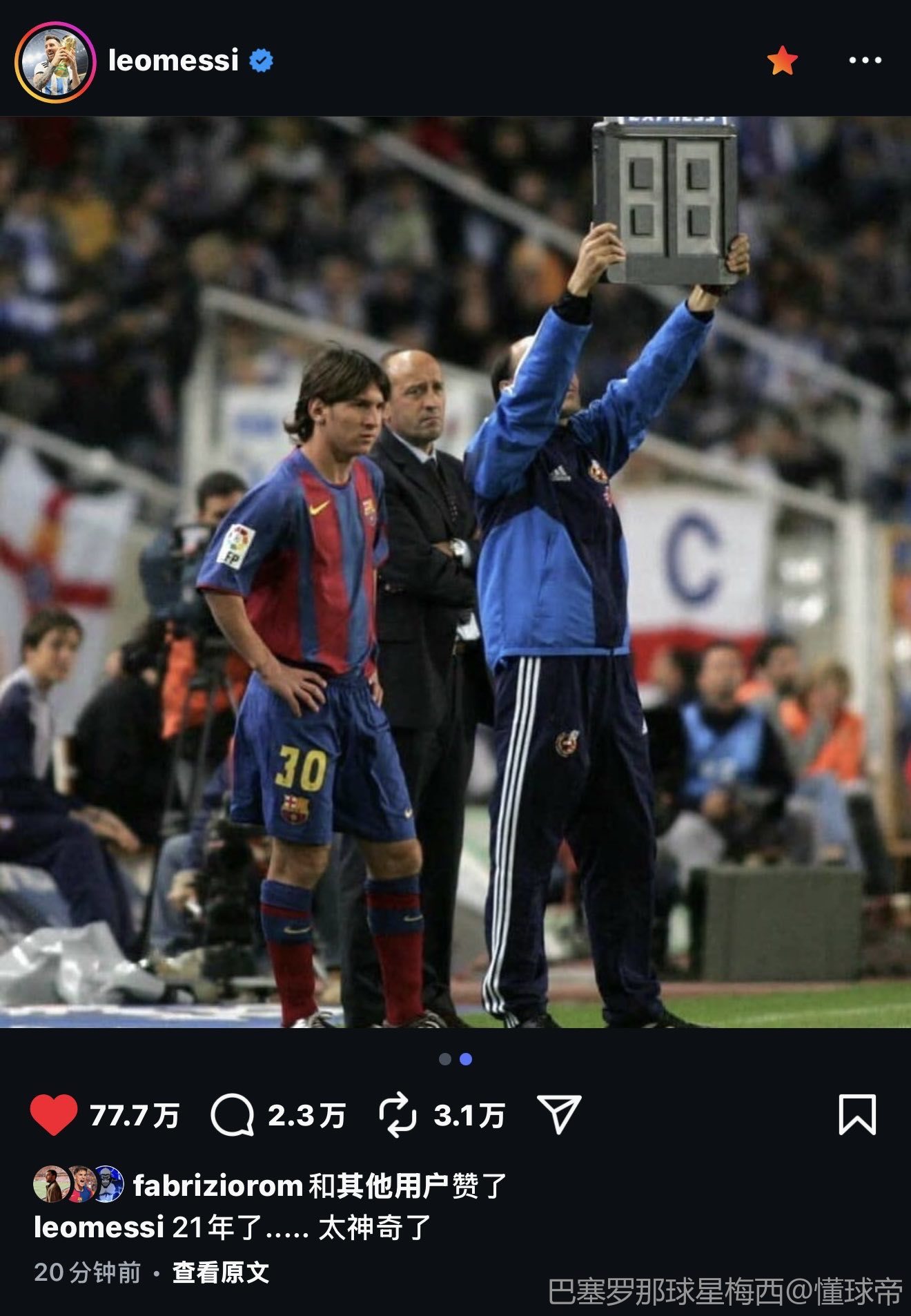 懂球帝首页>动态> 梅西纪念职业生涯一线队首秀:已经21年了,真不可思议