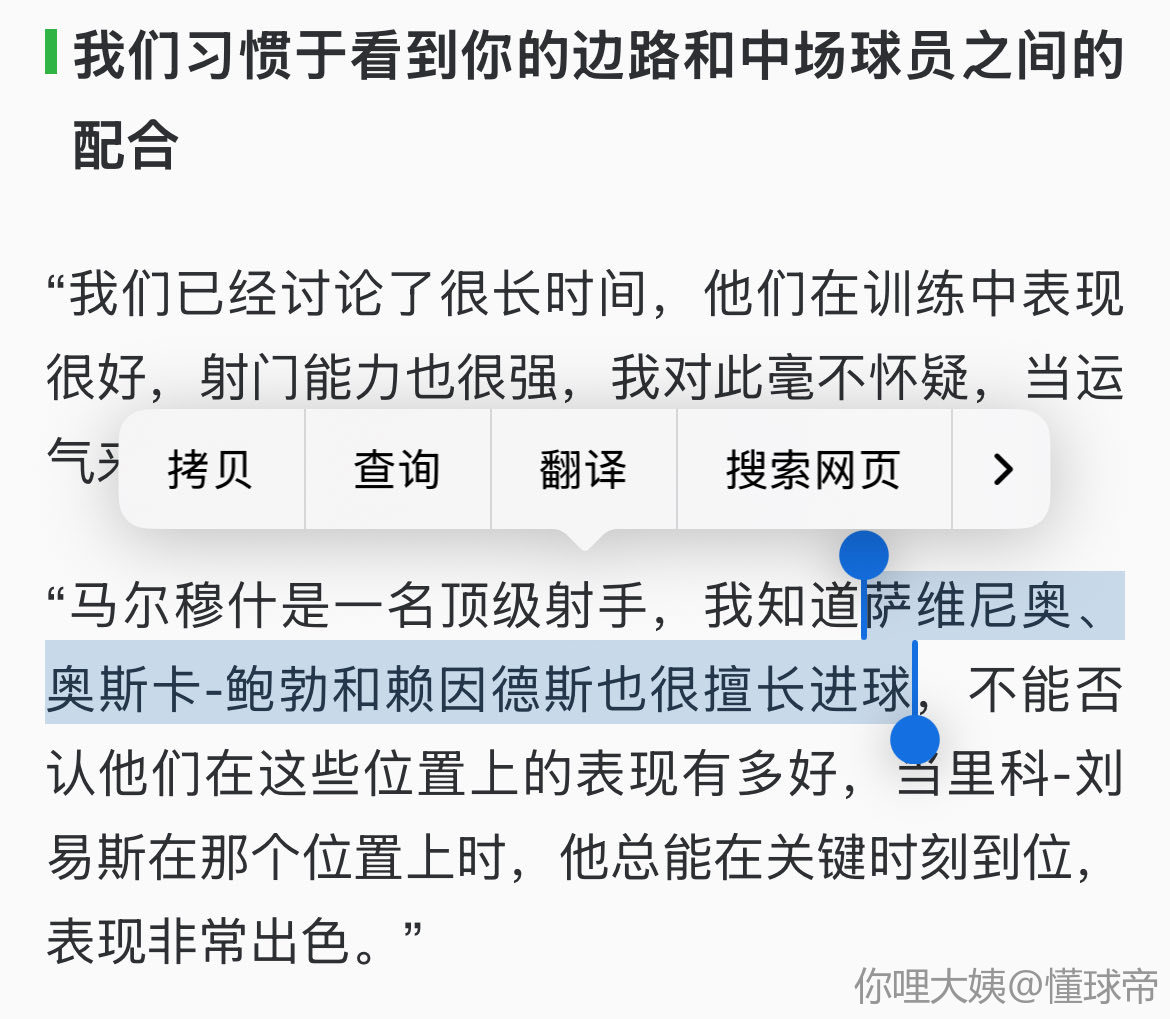 “是的,他表现得很好,他在训练中总是面带微笑,身体语言也很积极,在这种状态下,他总能创造一些东西,上半场我们遇到了一些困难,因为我们找不到处在空位上的球员,导致我们有些挣扎。”