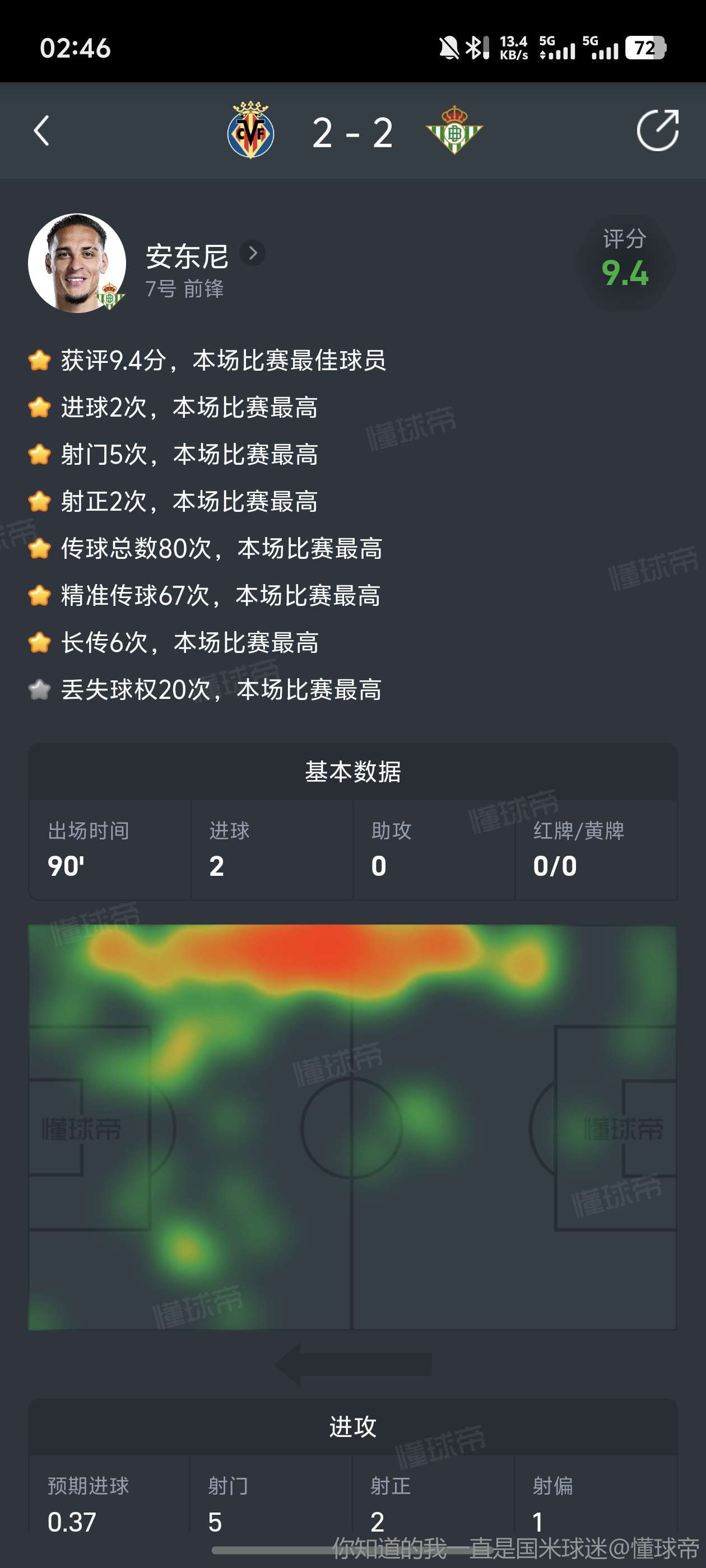 懂球帝首页>动态> 贝蒂斯客场2-2比利亚雷亚尔,安东尼双响+绝平,布坎南破僵