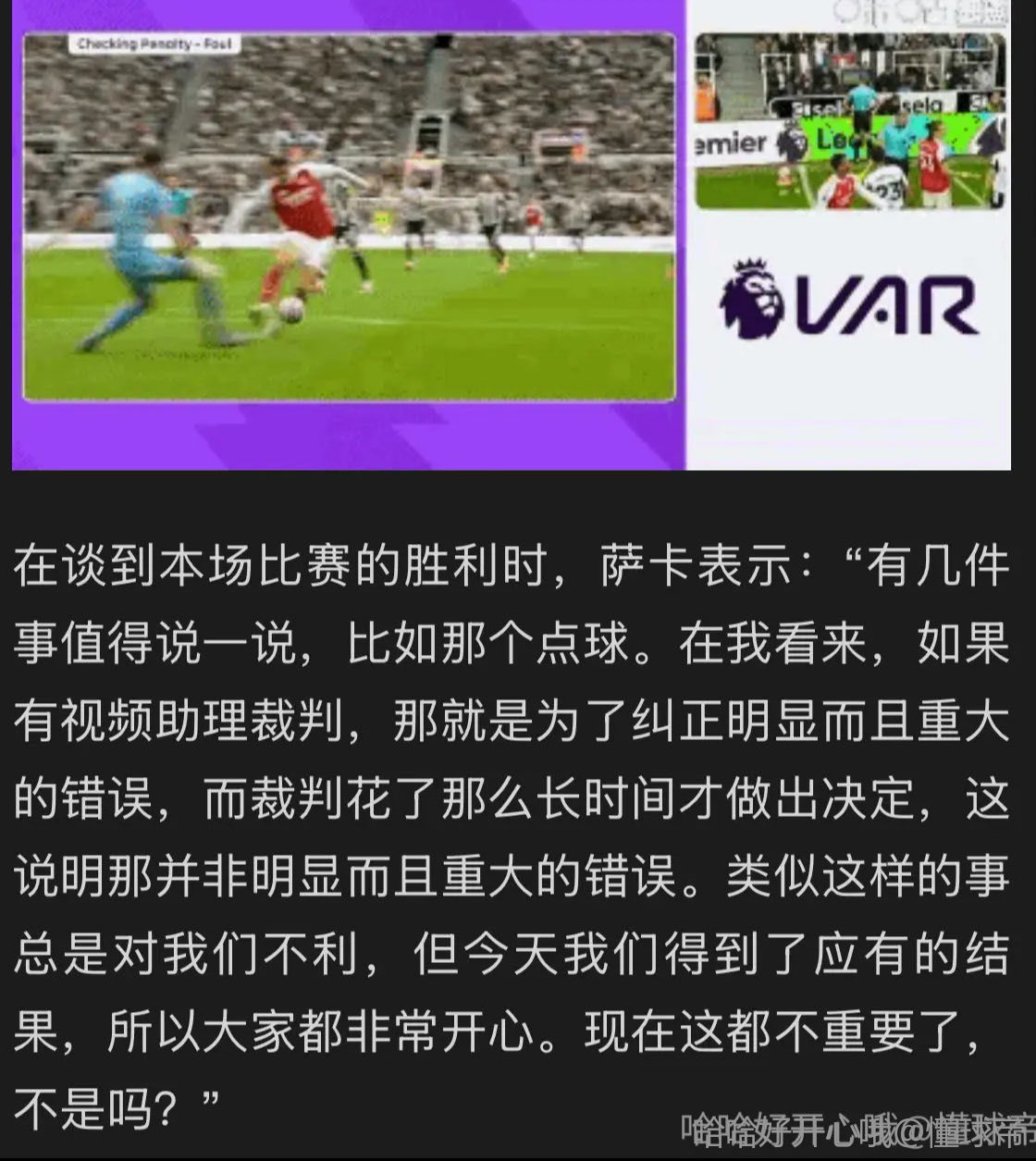 对纽卡说波普先碰球所以不是点球,今天先踢到大腿再碰到球也不是点球