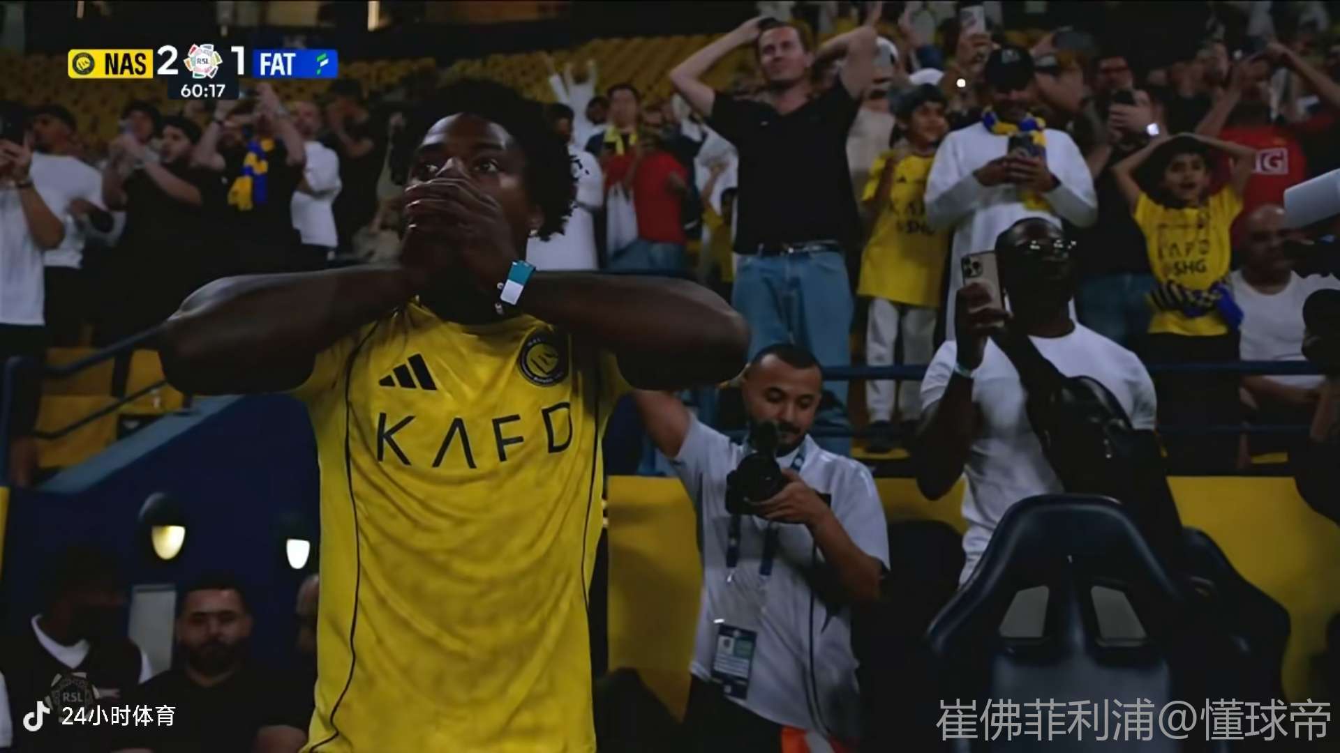 第67分钟,梅开二度,菲利克斯突破抽射远角破门,利雅得胜利3-1