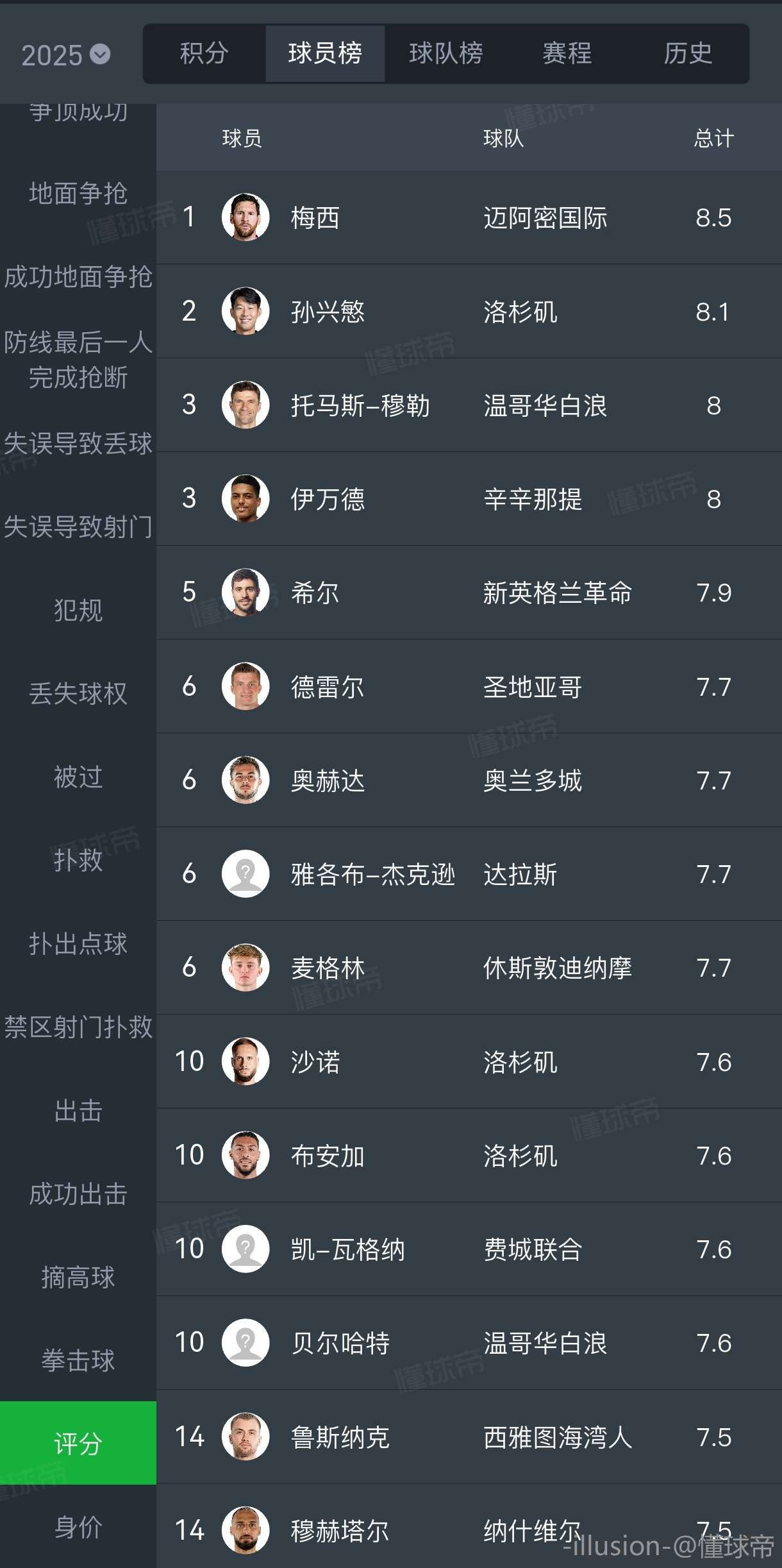 随着最后一场常规赛带帽收官,梅西位居本赛季射手榜第一,助攻榜第一,成功过人第一,创造机会第一,场均评分第一