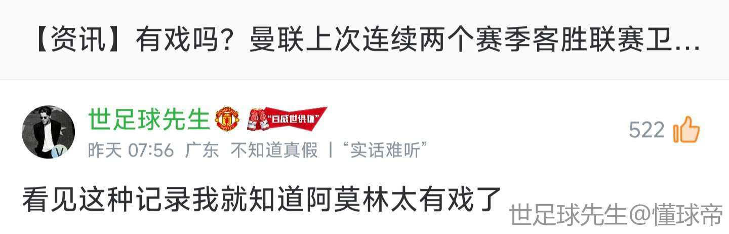 喜欢曼联,狙击争冠球队,输给保级队,主打锄强扶弱,好人
