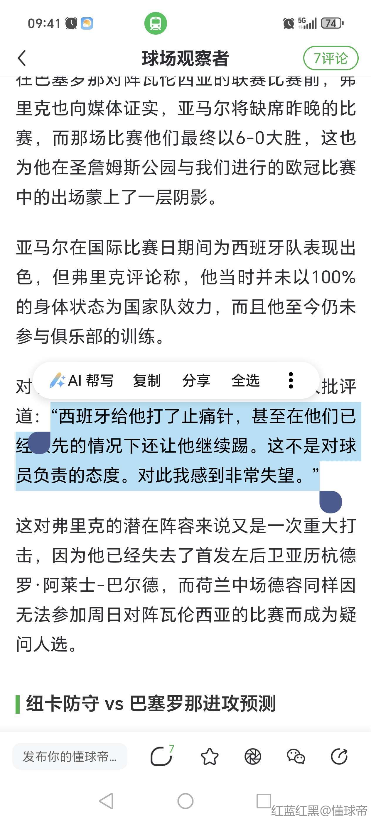 看明白了,这个光头是真的坏得很,弗里克不满的一直是光头让亚马尔打止疼针带伤上场这事,这个坏比搁这天天接受采访带节奏,带成了球员该不该为国效力
