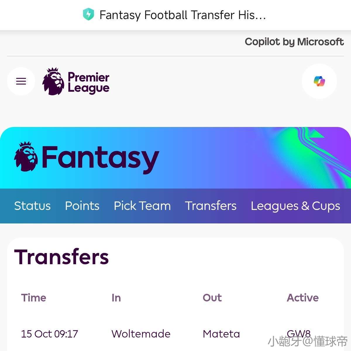 懂球帝首页>动态> 英超范特西GW8球员得分:詹姆斯18分第一,马特塔戴帽17分
