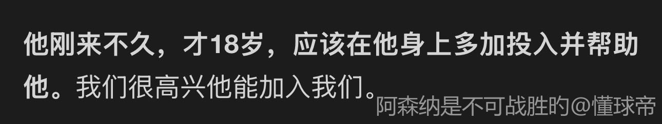 他刚来不久,才18岁,应该在他身上多加投入并帮助他。我们很高兴他能加入我们。