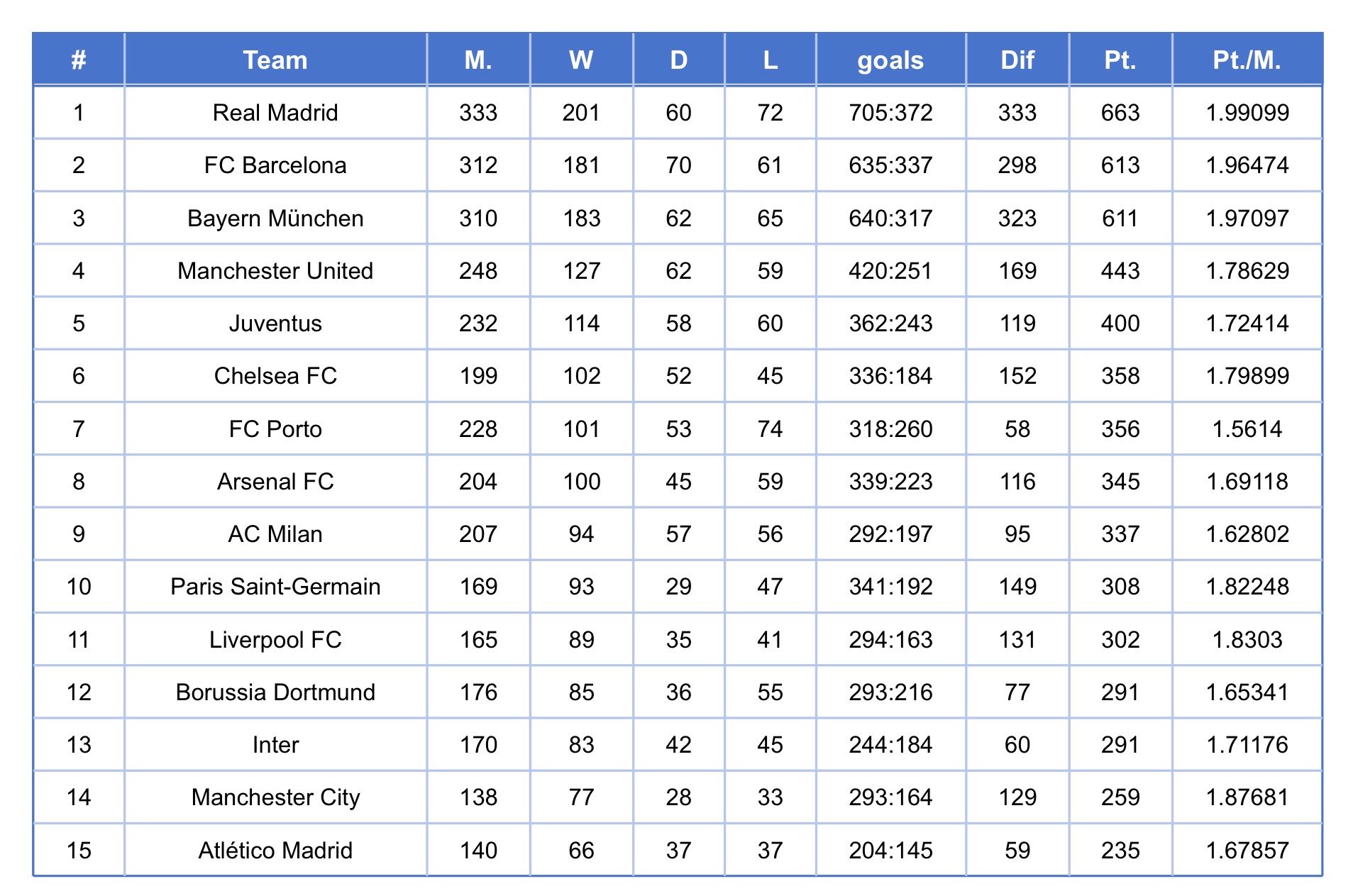 從場均得分看,皇薩仁不愧是皇薩仁,第二檔是曼城紅軍大巴黎