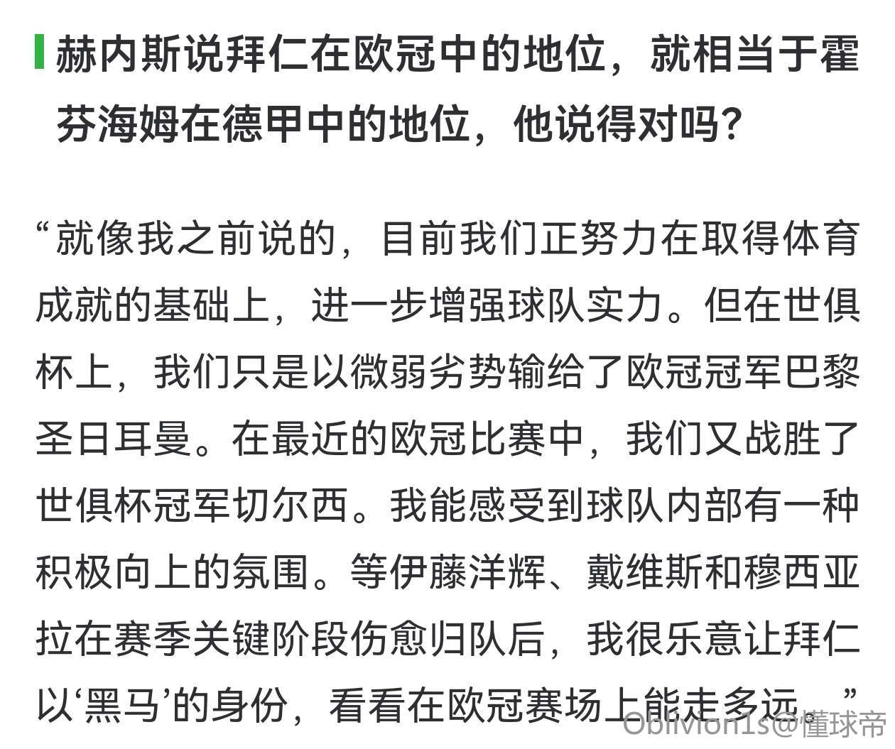 赫内斯说拜仁在欧冠中的地位,就相当于霍芬海姆在德甲中的地位,他说得对吗?