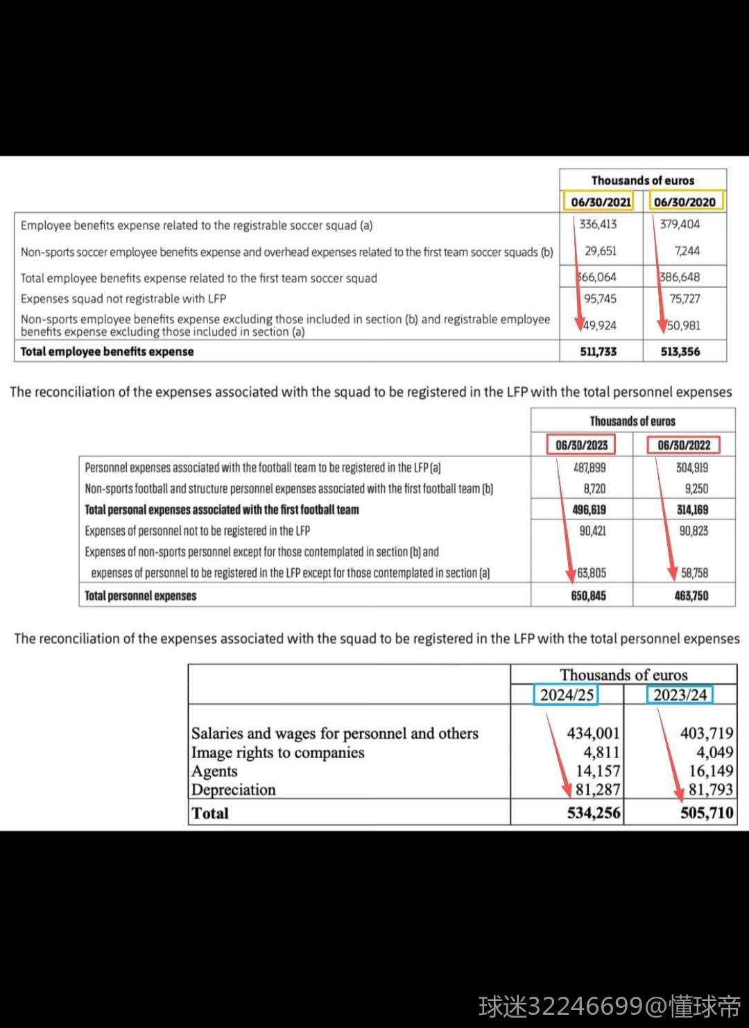 一直以来很多人说的梅西工资拖垮巴萨财政的言论,看看巴萨近几年的工资支出的财报吧