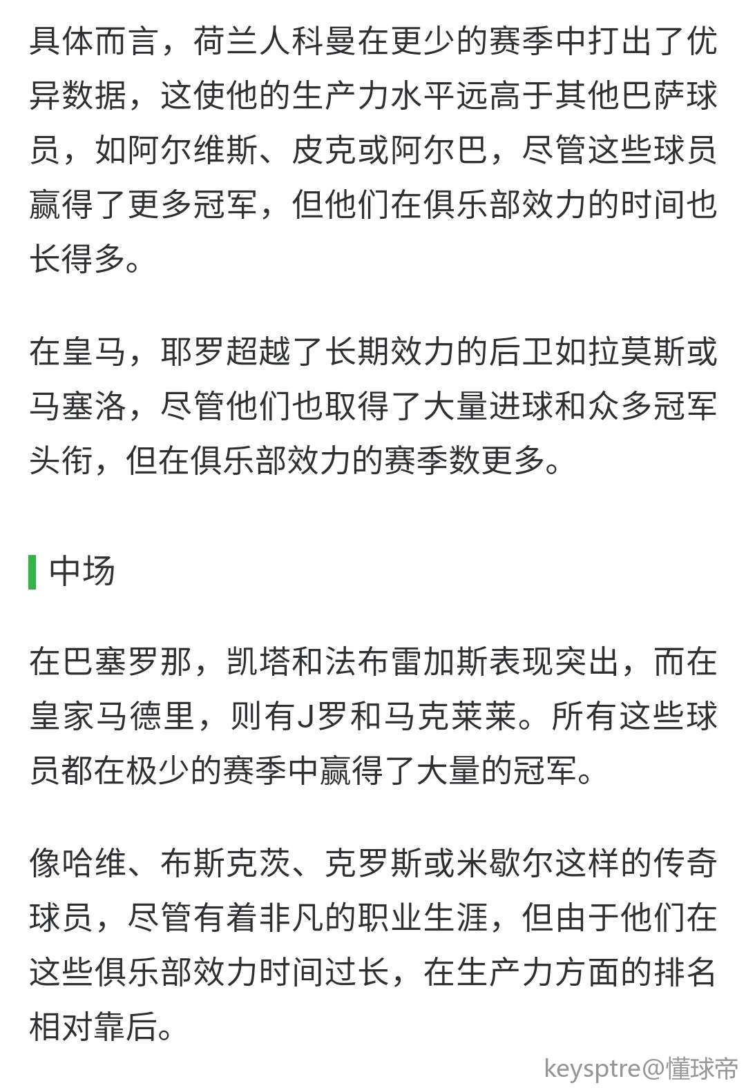 开头第一段就讲清楚算法了,为什么纳瓦斯比卡西更强,因为这个是按照赛季平均效率来算的,c 罗来到皇马时候已经成为了一个成熟的饼锋了,梅西则是在巴萨成长起来的