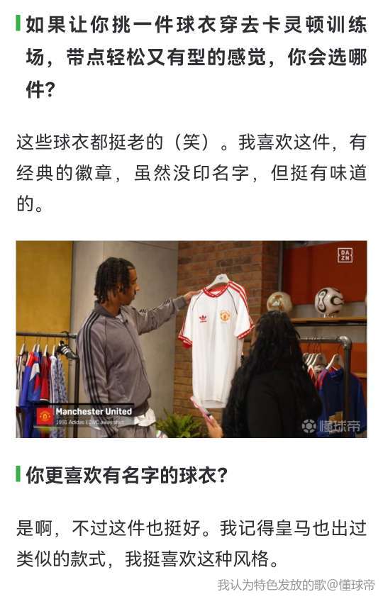 如果让你挑一件球衣穿去卡灵顿训练场,带点轻松又有型的感觉,你会选哪件?