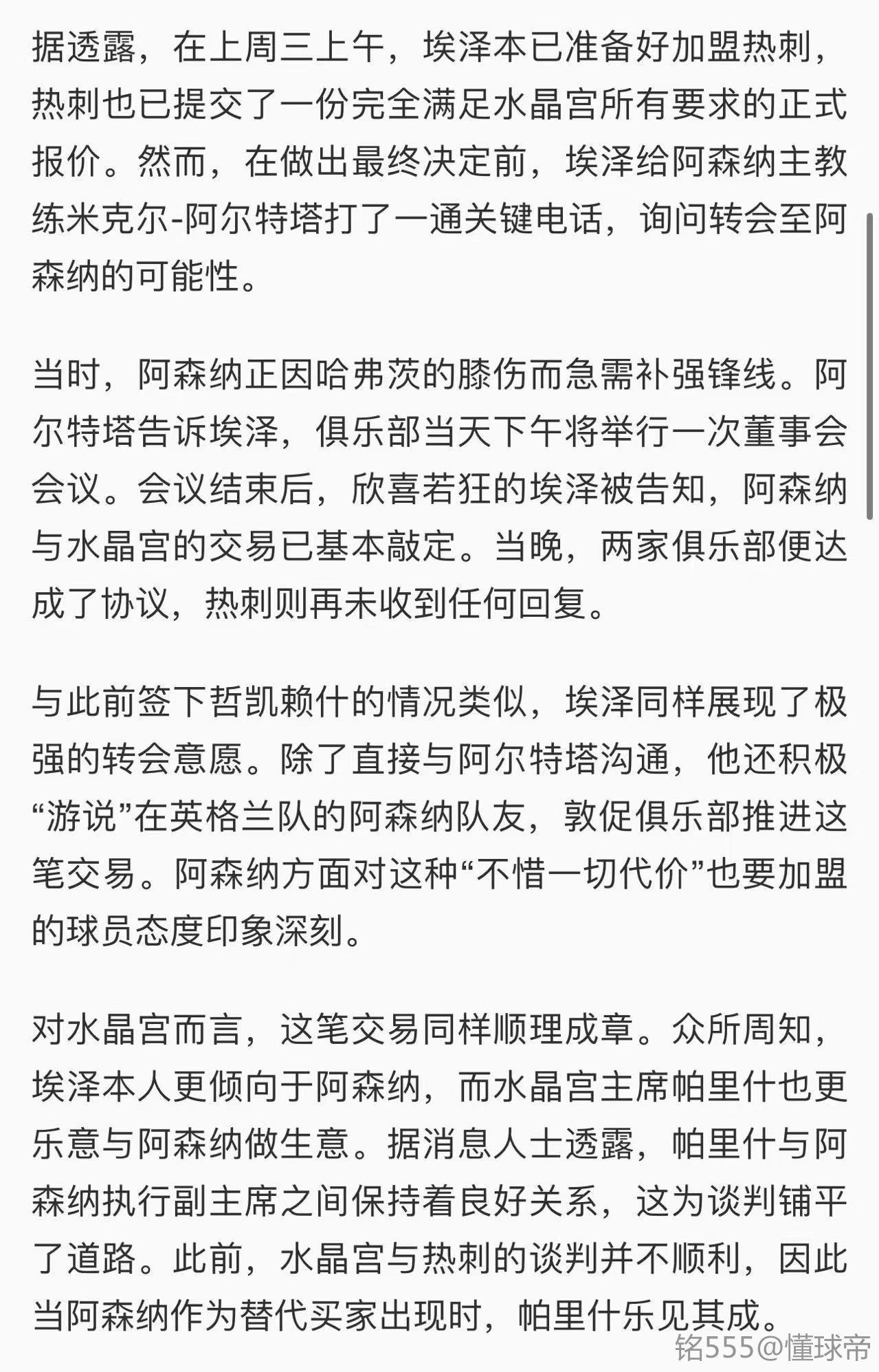 扫描下载懂球帝首页>动态> 埃泽谈今夏转会:本想加盟热刺,但枪手出现后我就非他们不选