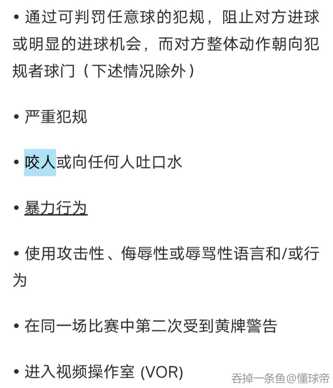 那么,有类似“打队友要被红牌罚下”的规则吗?为此我们查阅了最新的IFAB足球竞赛规则,其中对于“驱逐离场的犯规”是这样描述的: