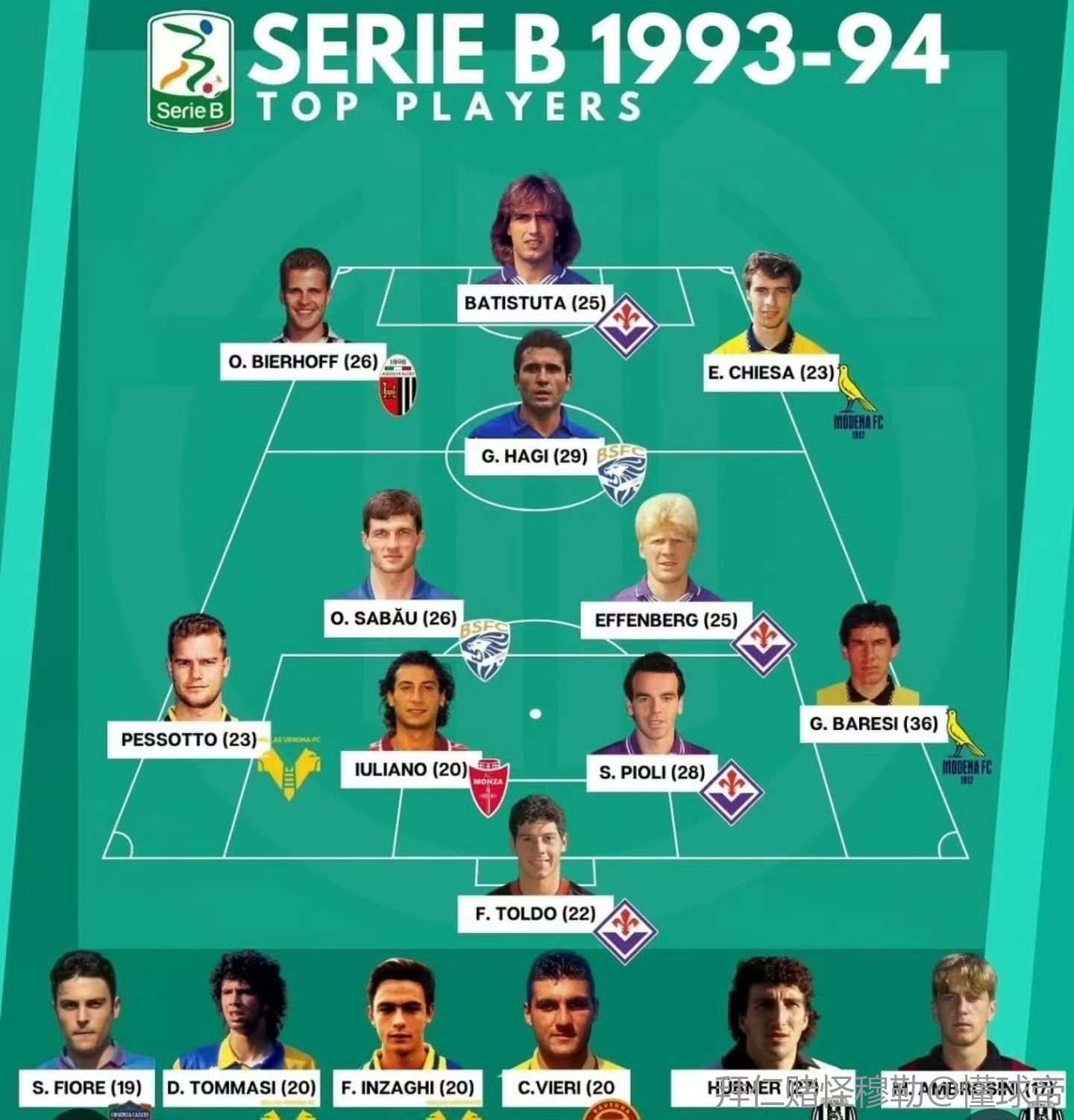 看到一张1993-94赛季意乙的最佳十一人