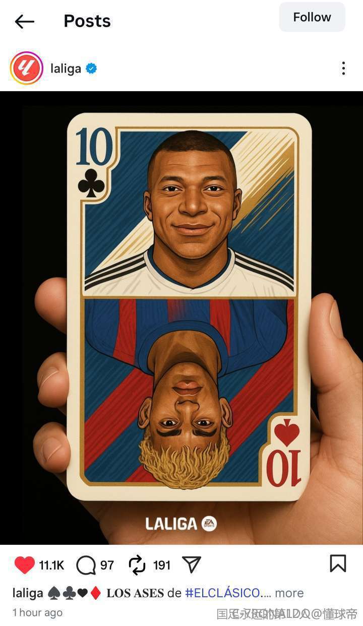 10-26 21:17西甲社媒:♠️♣️♥️♦️王牌对王牌