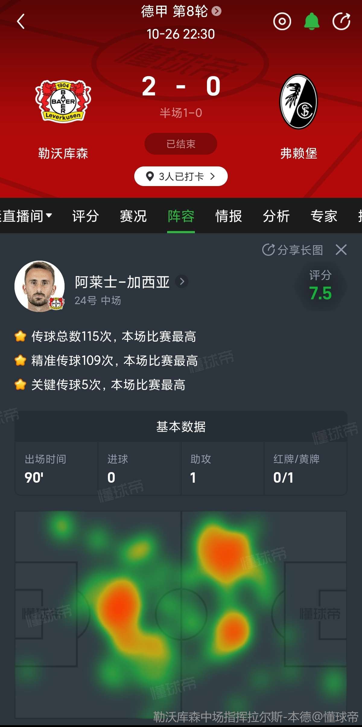 第23分钟,先拔头筹,波库弧顶前兜射破门,勒沃库森1-0