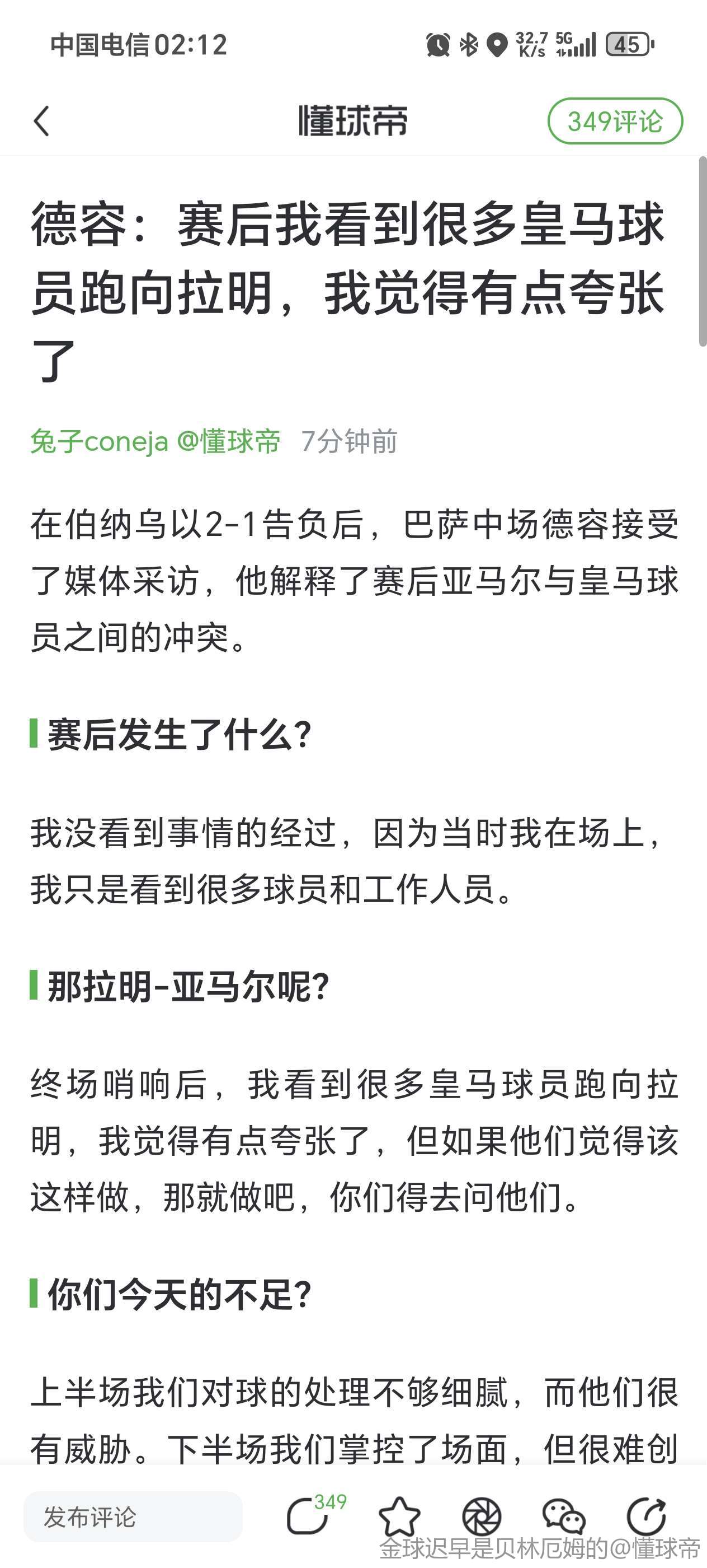 10-27 01:29德容:赛后我看到很多皇马球员跑向拉明,我觉得有点夸张了