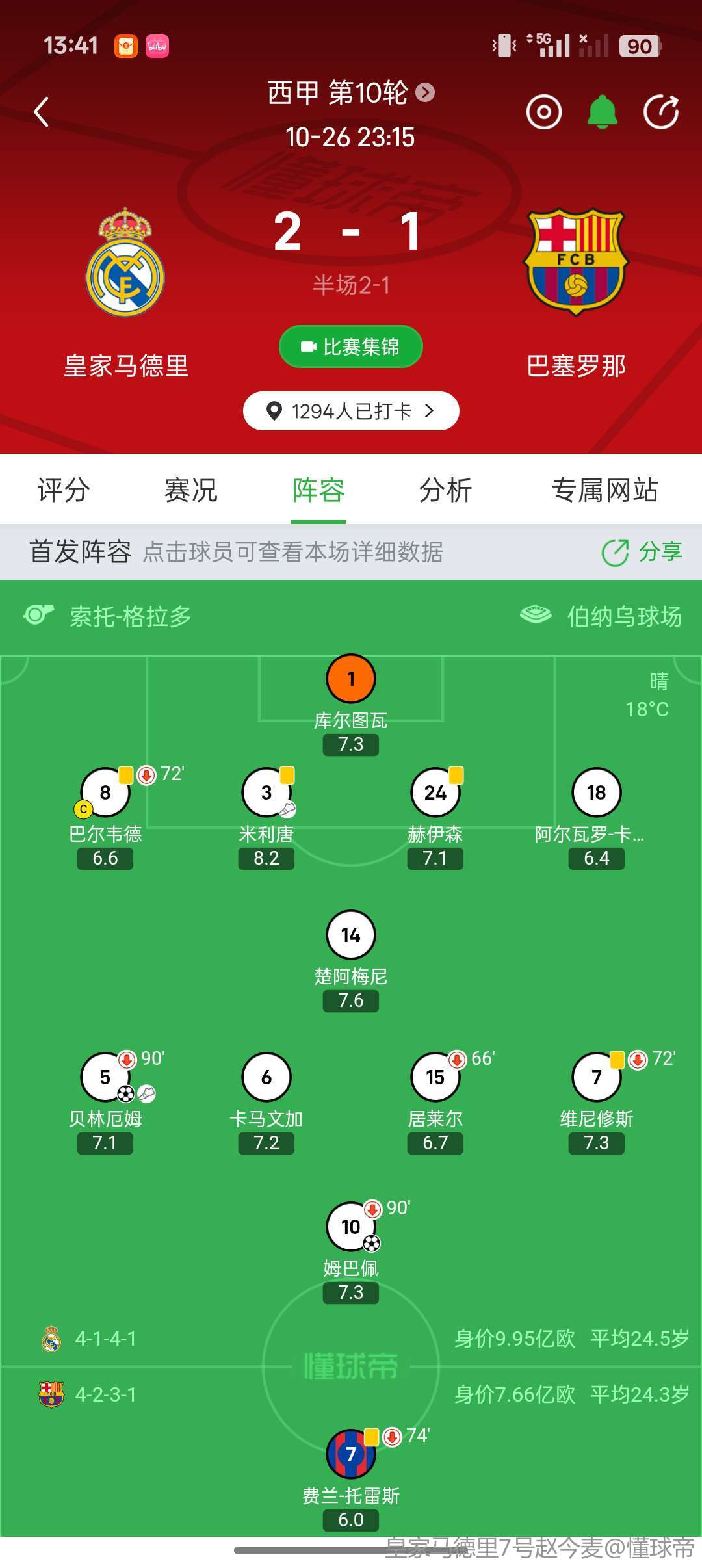 本赛季首次西班牙国家德比,皇马主场2-1巴萨,赛后《马卡报》表扬了卡马文加本场比赛的表现。