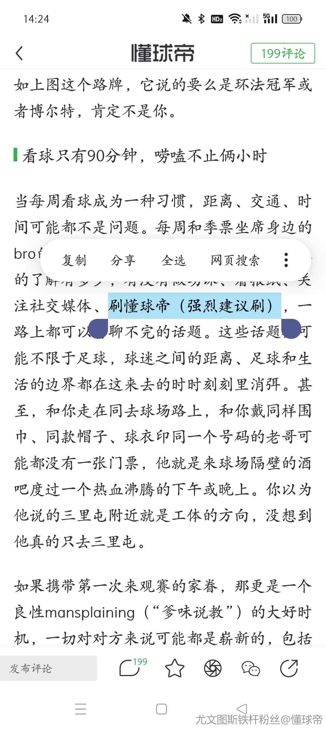 当每周看球成为一种习惯,距离、交通、时间可能都不是问题。每周和季票坐席身边的bro的一期一会可能更重要。无论你对球队的了解有多少,有没有做功课、看报纸、关注社交媒体、刷懂球帝(强烈建议刷),一路上都可以有聊不完的话题。这些话题很可能不限于足球,球迷之间的距离、足球和生活的边界都在这来去的时时刻刻里消弭。甚至,和你走在同去球场路上,和你戴同样围巾、同款帽子、球衣印同一个号码的老哥可能都没有一张门票,他就是来球场隔壁的酒吧度过一个热血沸腾的下午或晚上。你以为他说的三里屯附近就是工体的方向,没想到他真的只去三里屯。