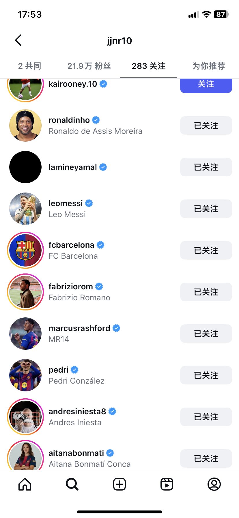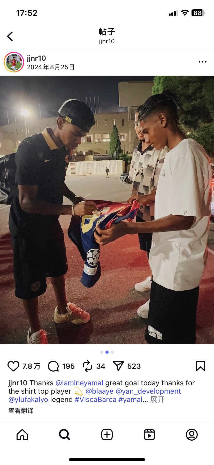 可以确认是儿萨梦 他IG关注了很多巴萨球员 偶像是内马尔 也有和亚马尔的合影