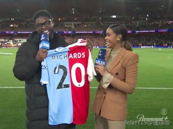 这哥们挺有趣的,节目里是活宝。所以被送了一件曼城阿森纳缝合球衣
