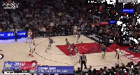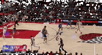 (先是一个大个子换防到三分线外,肖茨去顶篮下无球的球员,接着又一个锋线再和肖茨换防)