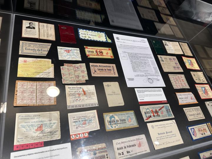 马竞的球场博物馆里,最先能看到的是有关传承的故事。无论是百年历史的老球票、老证件,还是一代代父母子女流传下来的老物件,都是作为珍贵文物放在玻璃柜中展出的内容。在球队历史的部分,最先展示的也同样是那些能让我们感受到人的气息的东西:球衣、球鞋,甚至是报纸头版和参赛证件。