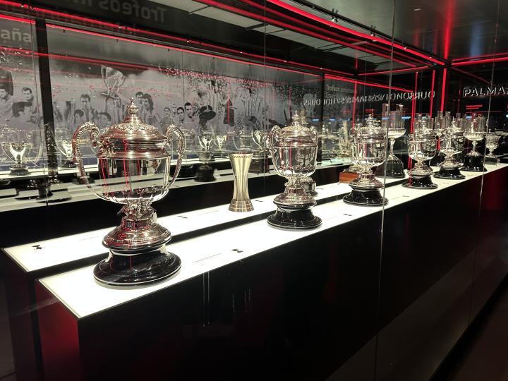 那是荣誉室,里面放满了一排又一排西甲和国王杯的奖杯。