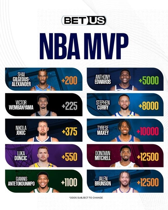 懂球帝首页>动态> NBA新赛季MVP赔率:亚历山大居首,文班亚马小幅落后位居次席