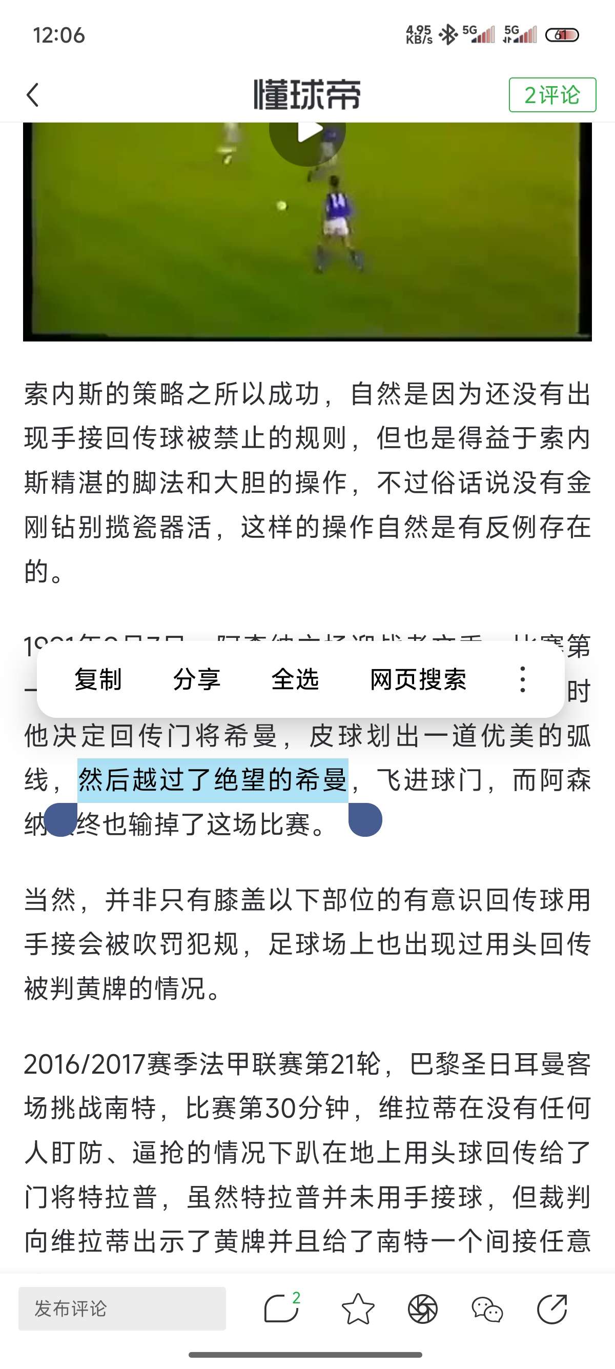 各位球迷都很熟悉足球规则,那么一定对我上面的描述有疑问:老师老师,规则不是说不允许门将用手接膝盖以下部位有意识回传球吗?为什么还能出现这种操作?