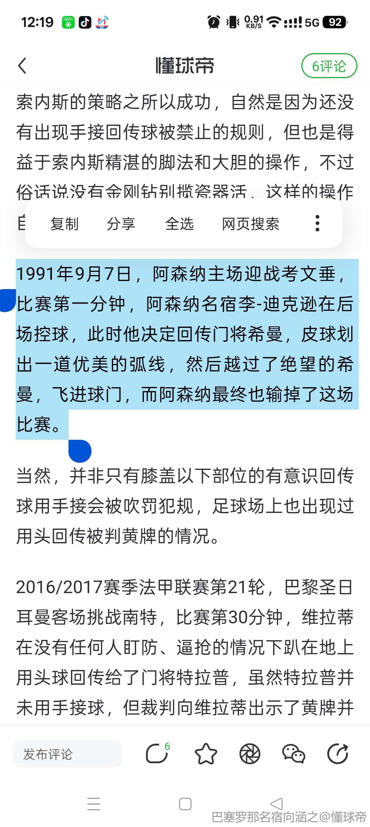 我是97年上初中开始踢球,经常遇到一些傻子说门将停一下回传球就可以抱了