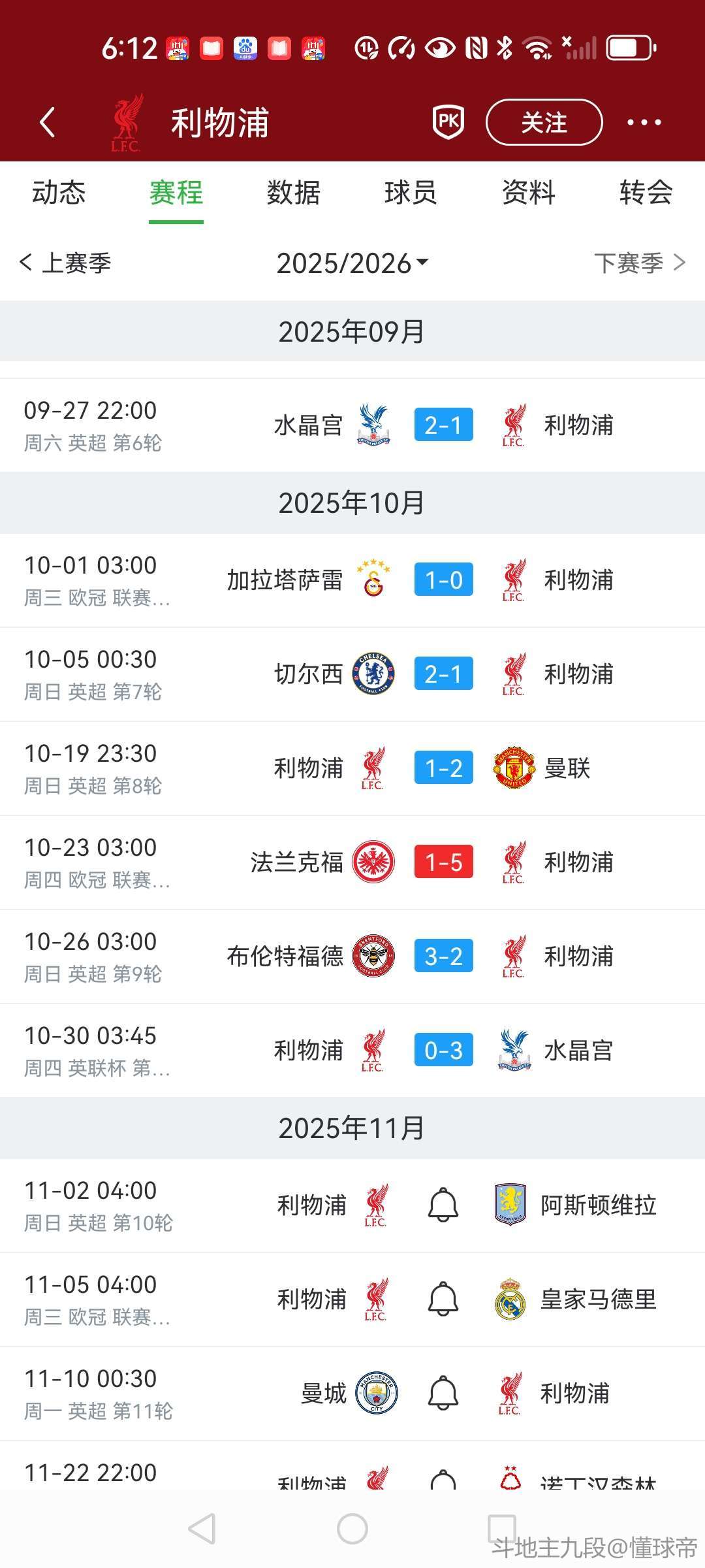 10-30 06:39利物浦自9月27日以来输了6场,为五大联赛球队最多