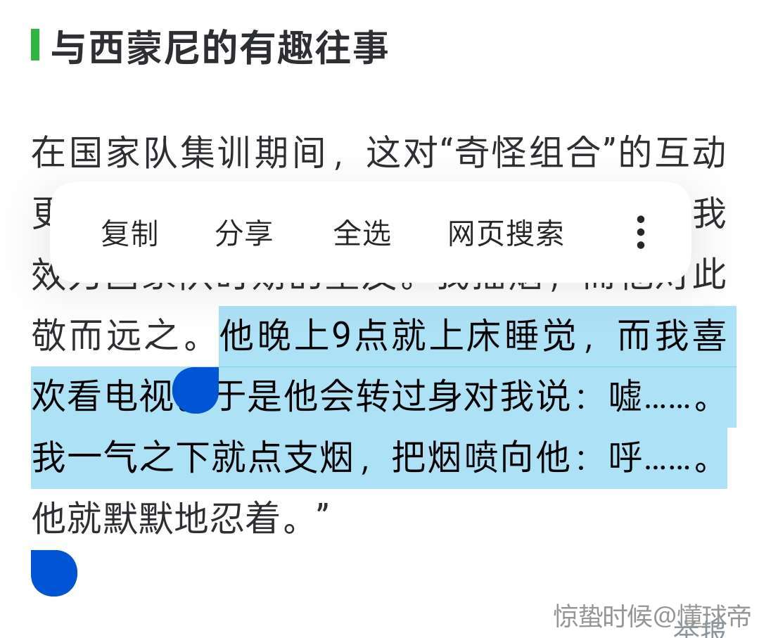 “我们的关系一直很好,当我来到塞维利亚而他效力马竞时,他来看过我超过150次。后来我们在拉齐奥共用更衣室,在一起的时间很长。但没错,我们一直非常不同:匪帅非常职业,甚至过度职业。他想成为所有人的榜样,而我看待足球的方式不同。可能有时我并不喜欢他的一些态度,但他确实是个好人。”