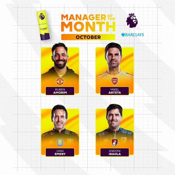 扫描下载懂球帝首页>动态> 英超10月最佳主帅候选:阿莫林、阿尔特塔、埃梅里、伊劳拉