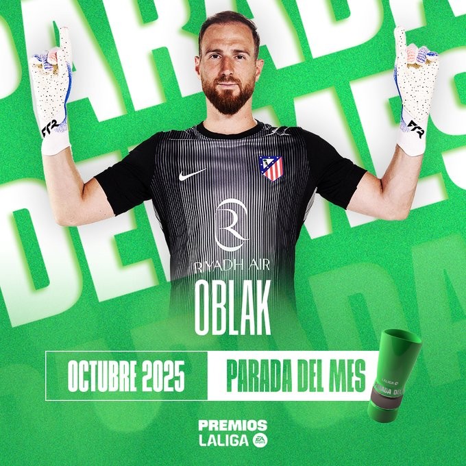 马竞10月最佳候选:朱利亚诺、奥布拉克、巴埃纳在列