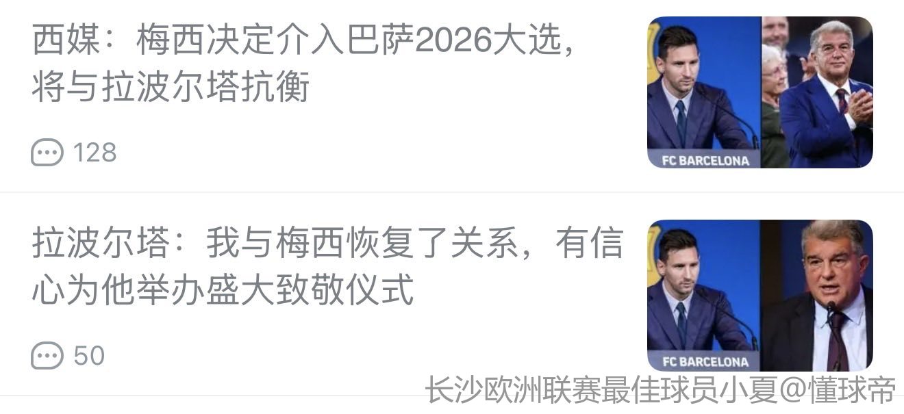 懂球帝首页>动态> 西媒:梅西决定介入巴萨2026大选,将与拉波尔塔抗衡