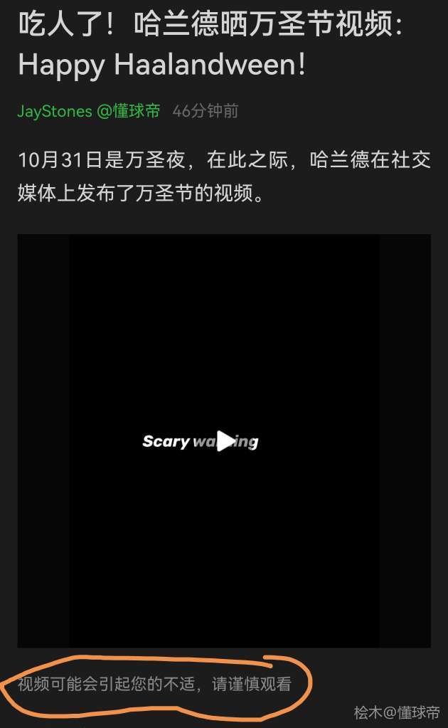 懂球帝首页>动态> 吃人了!哈兰德晒万圣节视频:Happy Haalandween!