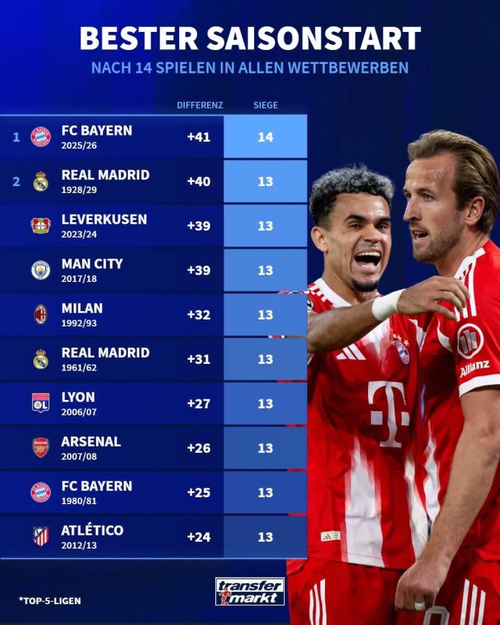 10-31 20:19赛季至今拜仁14场保持全胜,球队花费2.2亿欧打...