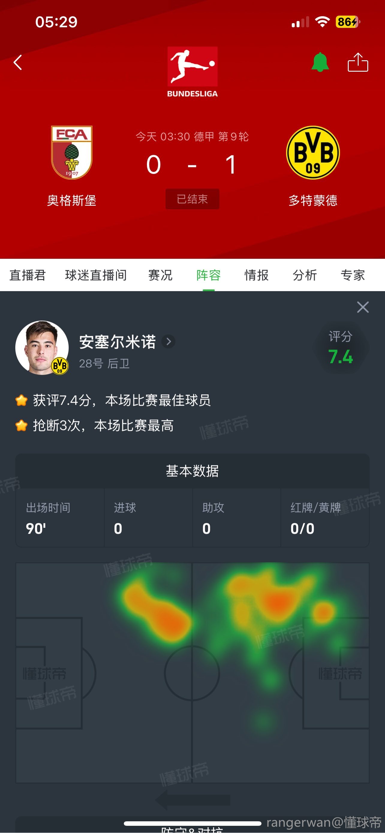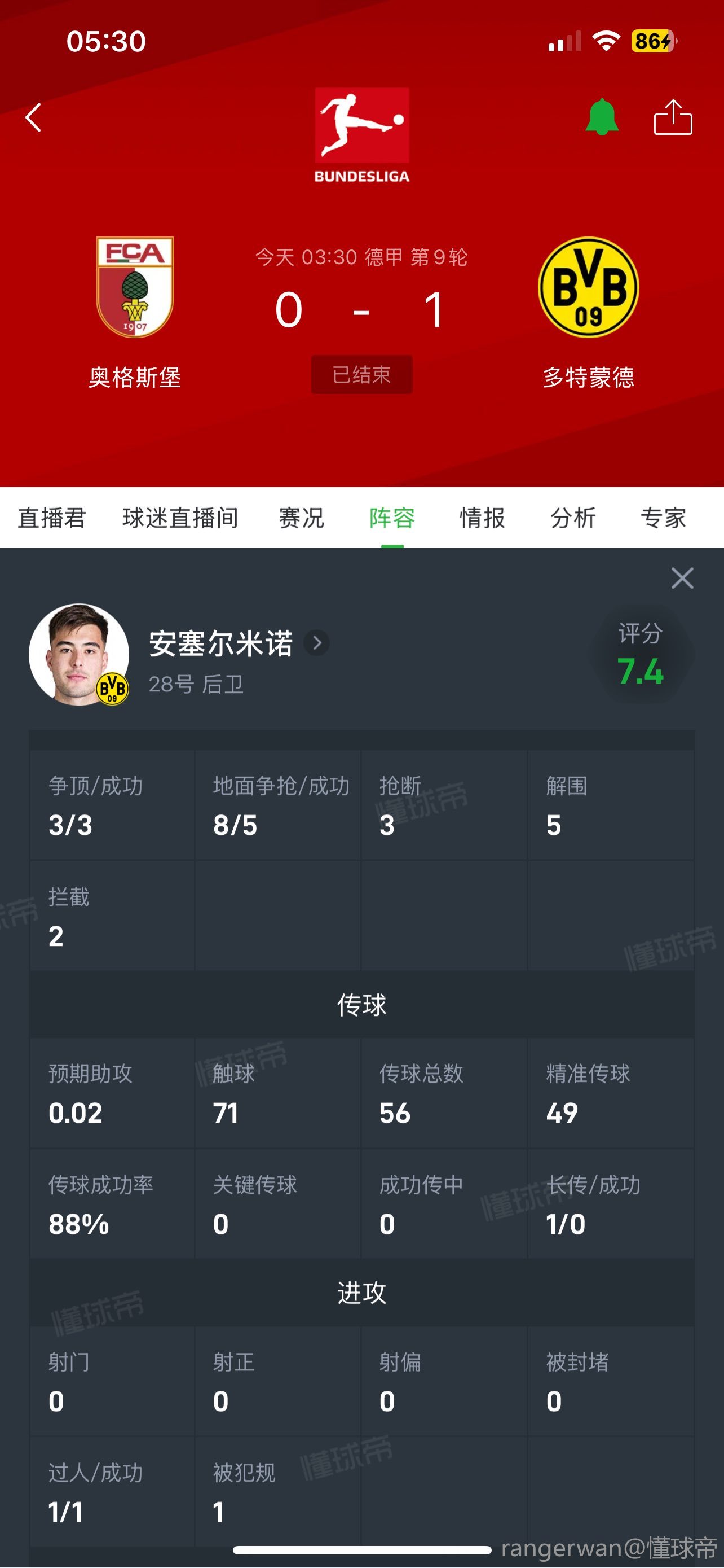 10-31 20:15安东:1-0取胜靠了点运气;最后阶段多特的防守做得很好