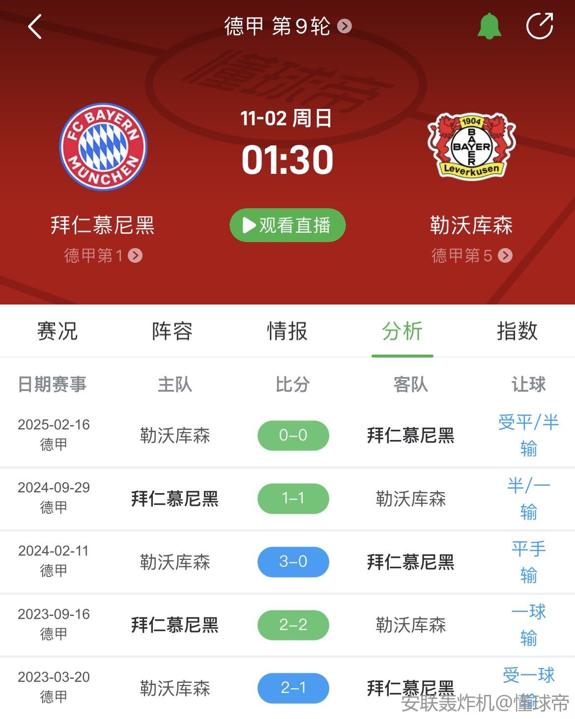 11-01 06:34强强对决,拜仁本赛季德甲从未落后,勒沃库森每场都先进球