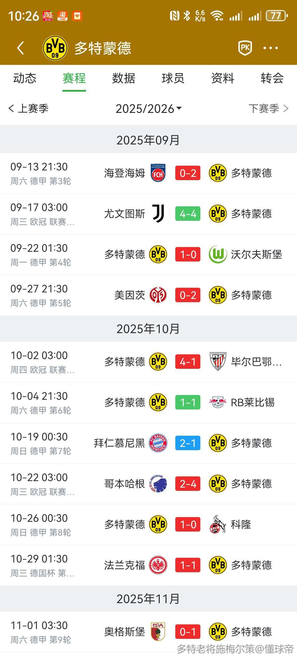 11-01 18:37️ 十一月赛程安排! @A罗飞04 l #多特蒙德…