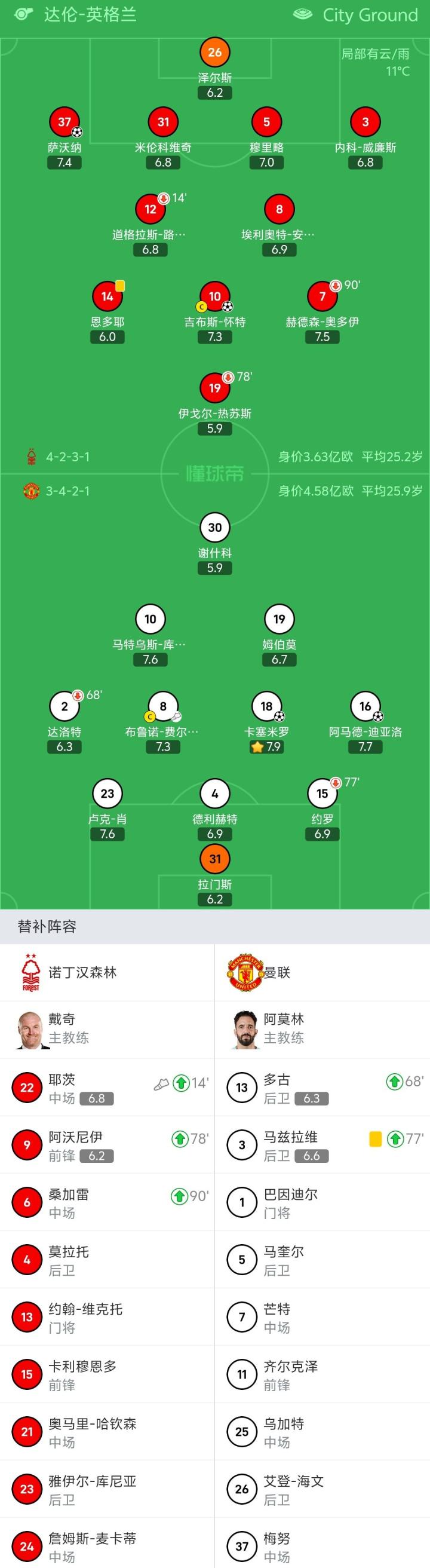 森林针对性的明显遏制住了曼联右侧老詹和迪亚洛的威胁,他们两人拿球周围有四五个人防守。这个情况,曼联以后要有对策和办法才行。。